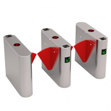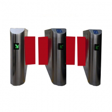 翼閘,在軌道交通行業一般稱為剪式門,國外很多地方也稱為速通門,其攔阻體(閘翼)一般是扇形平面,垂直于地面,通過伸縮實現攔阻和放行。攔阻體的材質常用有機玻璃、鋼化玻璃,有的還采用金屬板外包特殊的柔性材料(減少撞擊行人的傷害)。