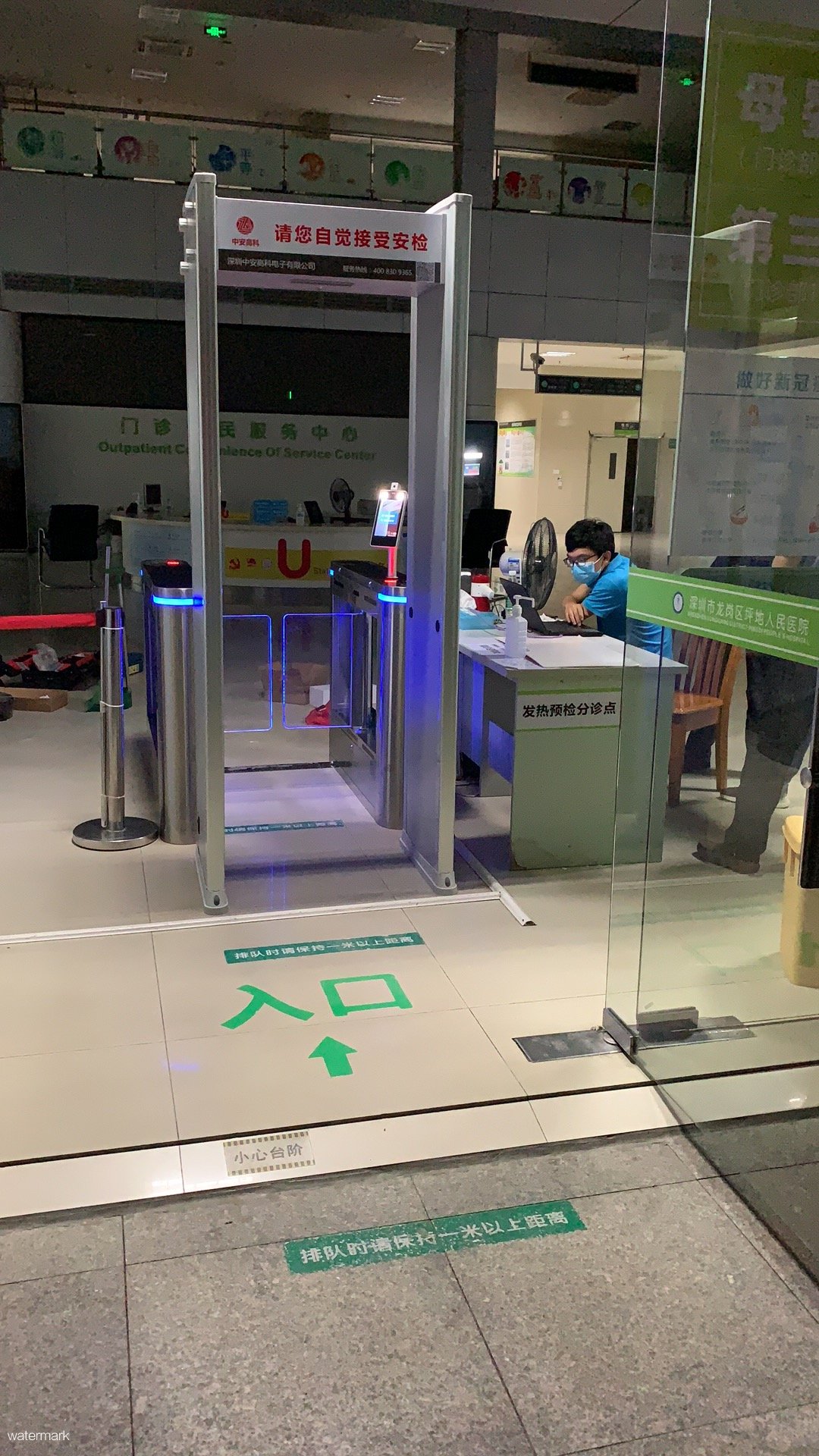 深圳市龍崗區第六人民醫院于今年5月份應用了深圳市鐵軍智能科技有限公司粵康碼人臉識別測溫擺閘設備,用于提高就醫人員通行效率,縮短患者等候時間。