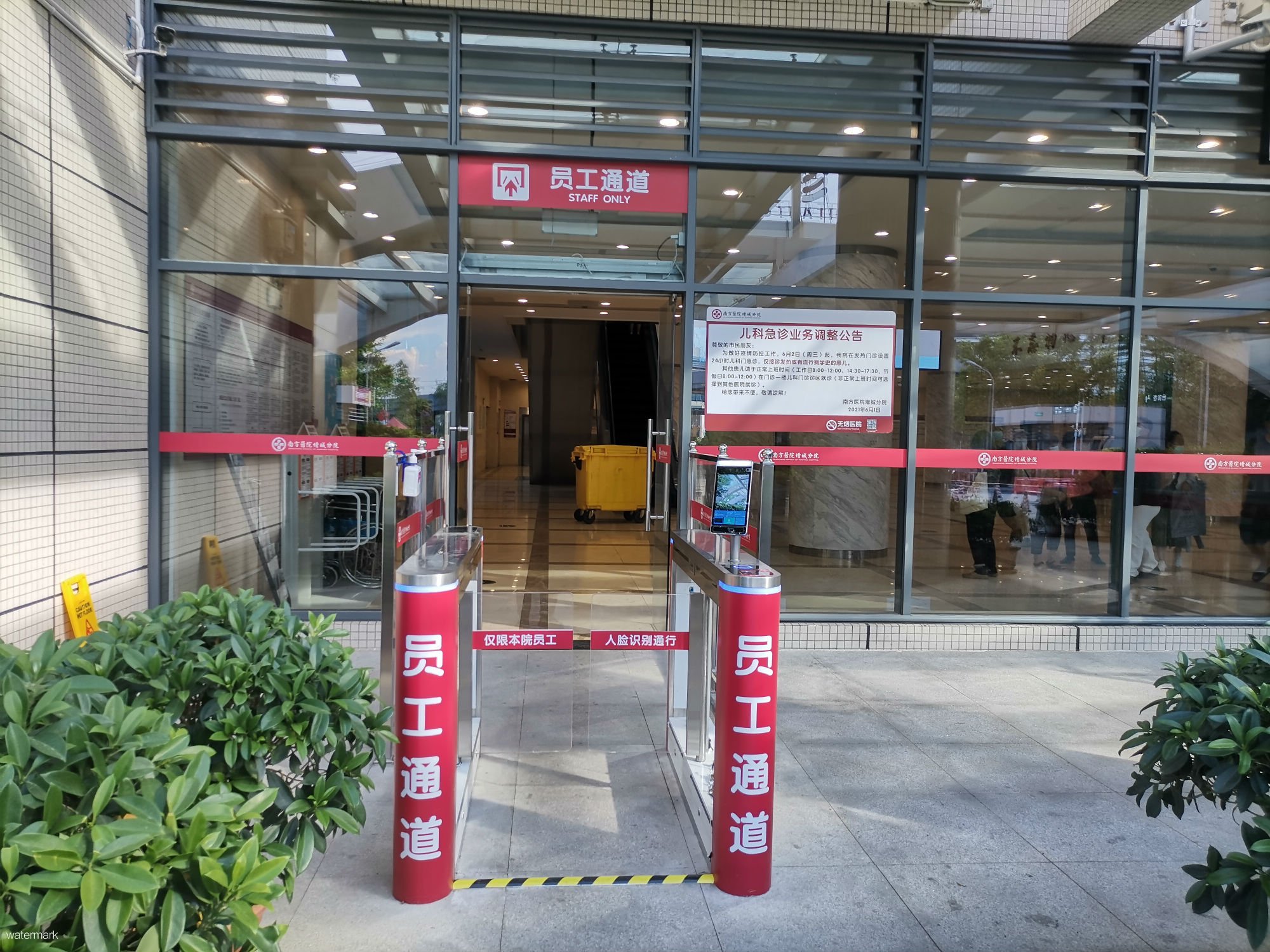 南方醫(yī)院增城分院于今年6月份應用了深圳市鐵軍智能科技有限公司擺閘設備,用于院區(qū)人員管控及門禁管理。
