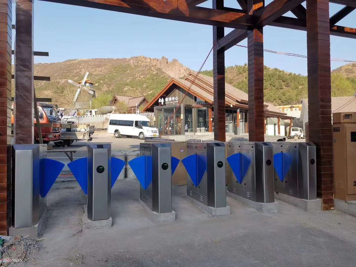 張家口檀邑溪谷文化園出入口處采用的是深圳市鐵軍智能科技有限公司出品的景區翼閘閘機。